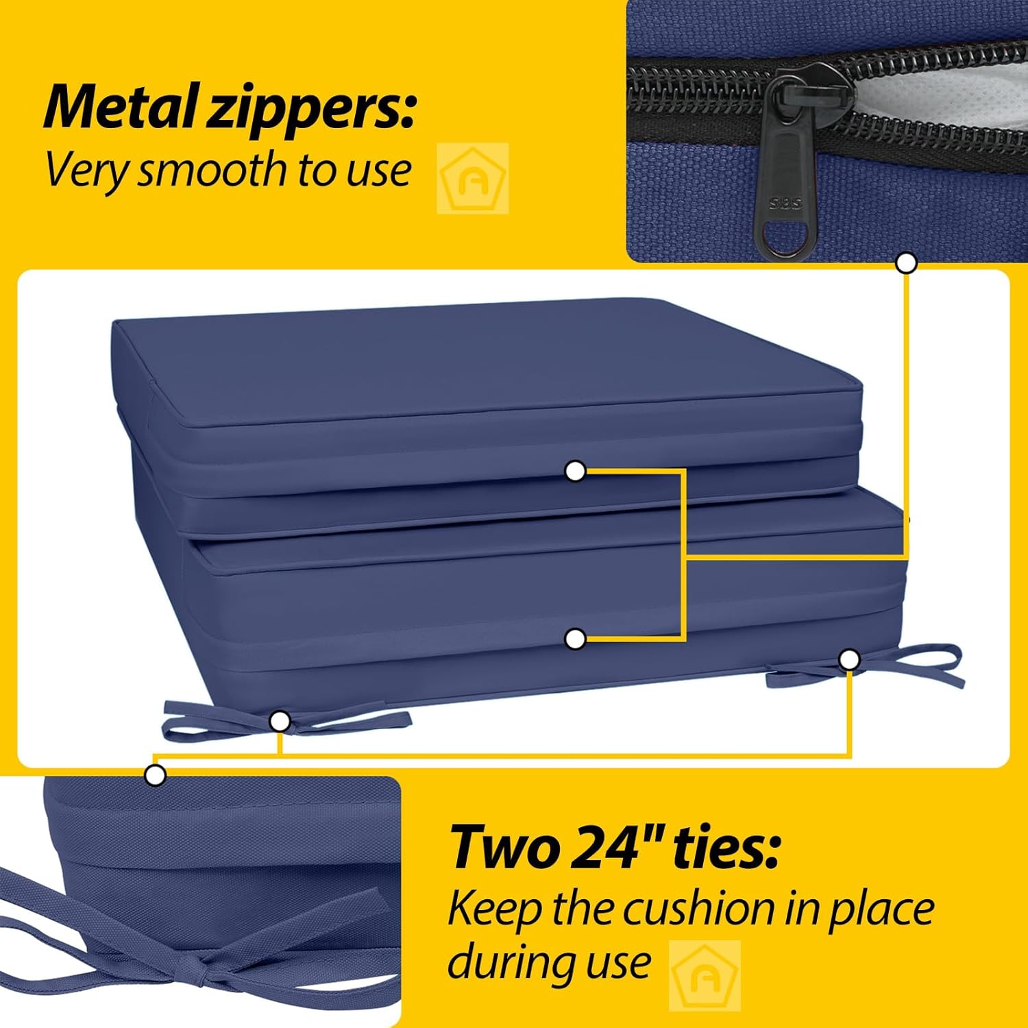 AAAAAcessories Outdoor Deep Seat Cushions, Foam Pillow, Waterproof, Fade-Resistant Patio Furniture Replacement Cushions, 24" x 24" x 5", Set of 4, Navy Blue
