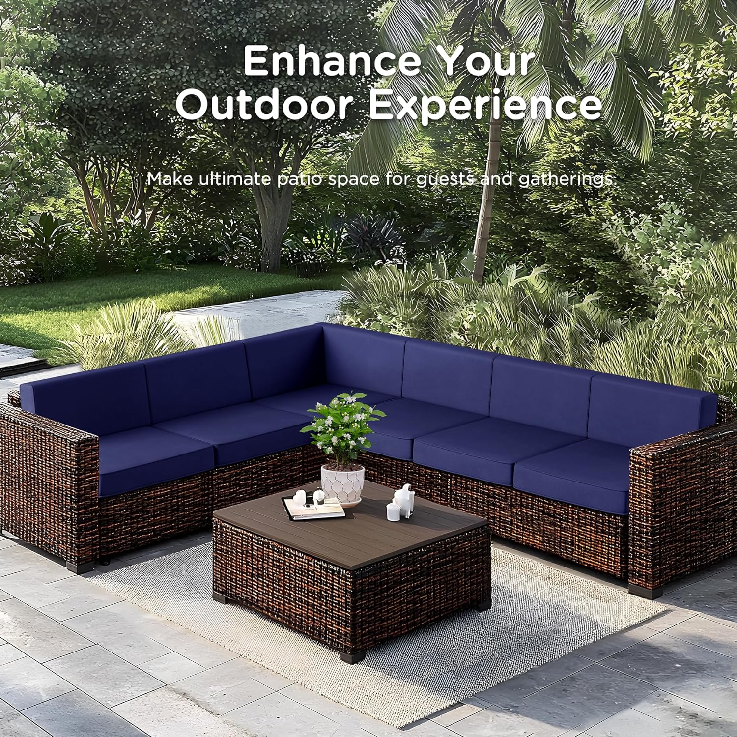 Codi 14-Piece Outdoor Cushions for Patio Furniture, 6 Seat Waterproof Replacement Cushion Set - High-Density Foam, UV Resistant, Fits Wicker & Rattan Sectional Sofas - Navy