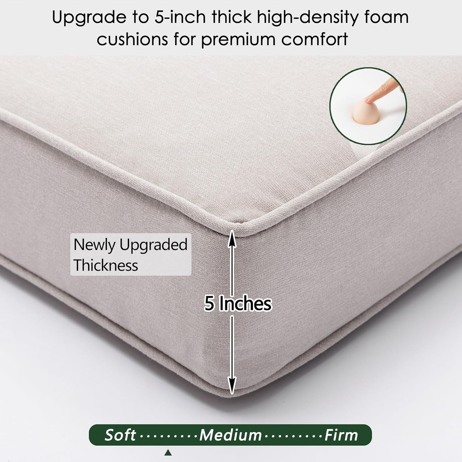 KINWELL 2-Pack Extra Thick 5-Inch Outdoor Chaise Lounge Cushions, 100% Polyester Waterproof Thick Lounger Pad, UV & Fade-Resistant Patio Furniture Seat Back Pad, 23'' W x 75''L x 5”H, Beige