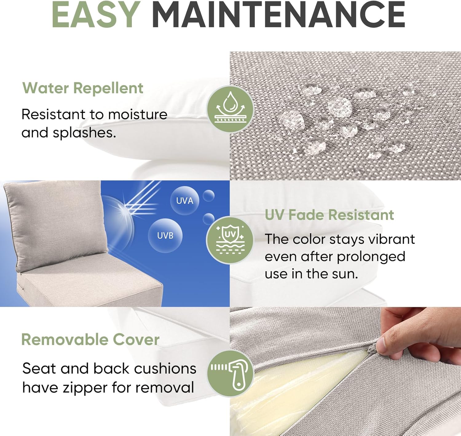 Outdoor Chair Cushions Set of 3, Waterproof 24x24 Patio Chair Cushion, 6" Thickened Seat Cushion for Outdoor Furniture, Couch Cushion Replacement, Include 3 Back & 3 Seat Cushions, Thick/Beige