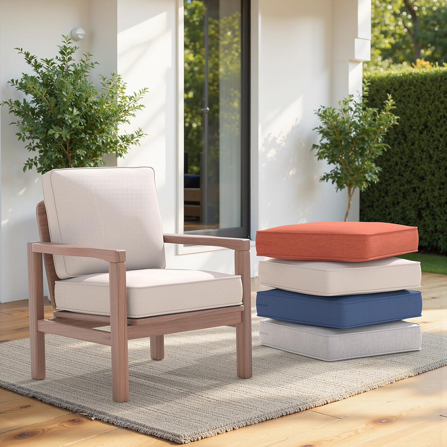 Outdoor Chairs Cushions 23 x 24 inch Patio Furniture Chair Cushion Set of 5 Water-Resistant Fade Resistant and Removable Cover for Sectional Sofa Wicker Chairs Loveseat Couch, Beige