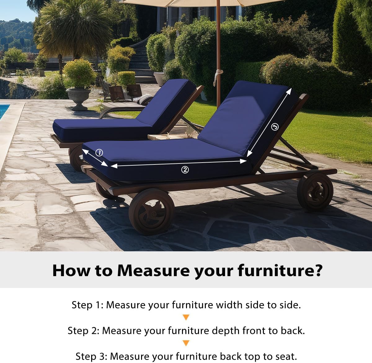 Sundale Outdoor Olefin Chaise Lounge Cushion Set of 2, Water-Resistant Patio Lounge Chair Cushion, Thick Lounger Pad with 8 Straps Navy Blue, 80 x 26 x 6 Inches