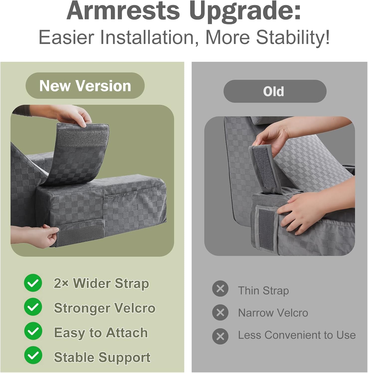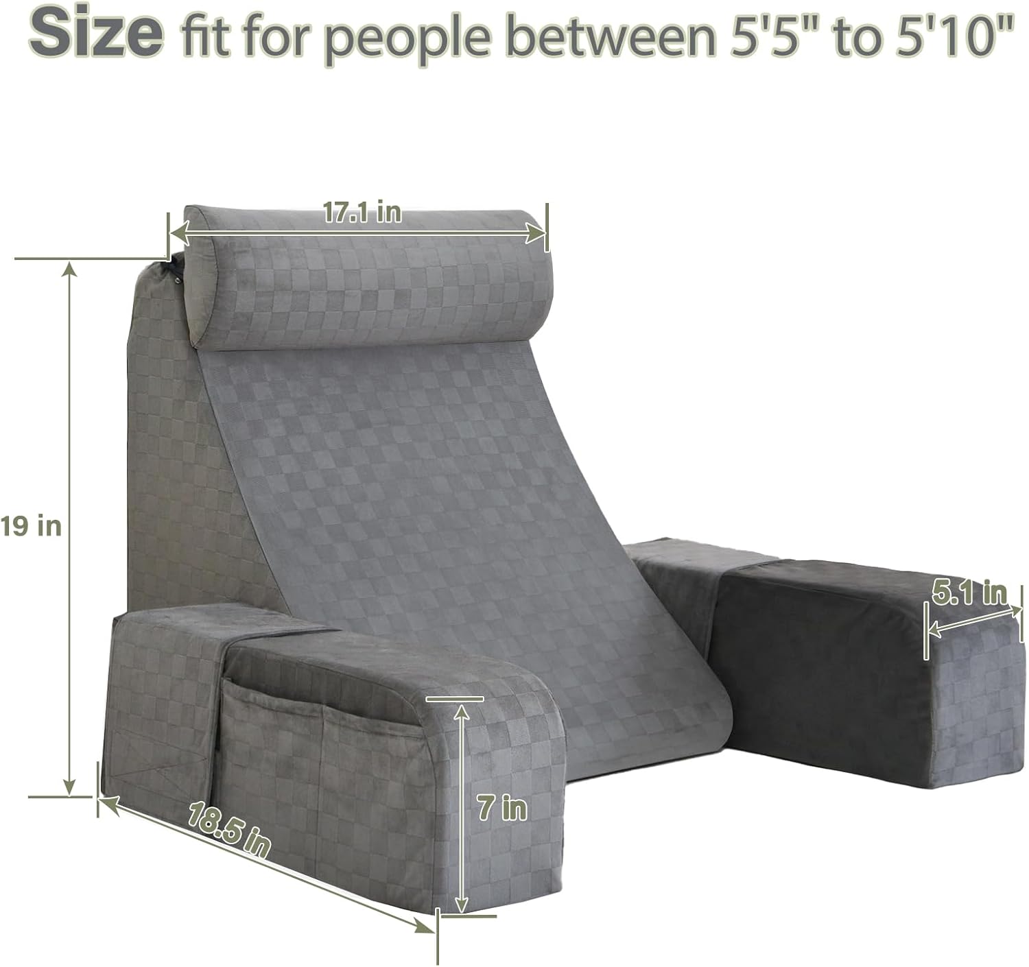 Vekkia Reading Pillow,Back Pillow for Bed Sitting Up Adult,Backrest Support Pillow with Arm and Large Pockets,Rest Chair for Reading,Gaming,Relaxing,Working or Watching TV in Bed&Floor-19in Grey